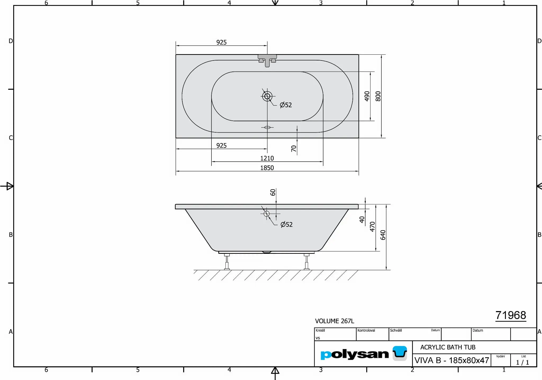 VIVA B Wanna akrylowa prostokątna 185x80 cm 71968 - rysunek techniczny