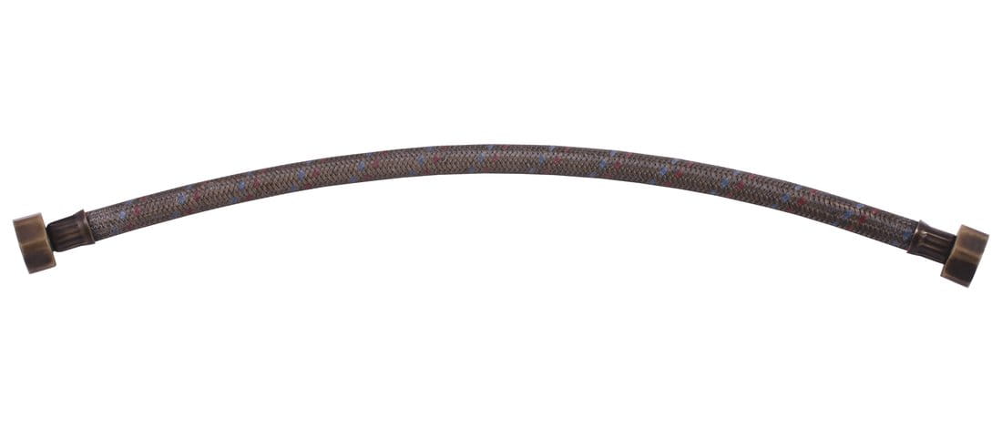 Wąż ze stali nierdzewnej w oplocie długości 40 cm. Nakrętka kołpakowa na obu końcach w kolorze brąz. Rozmiar gwintu FxF 1/2"x1/2