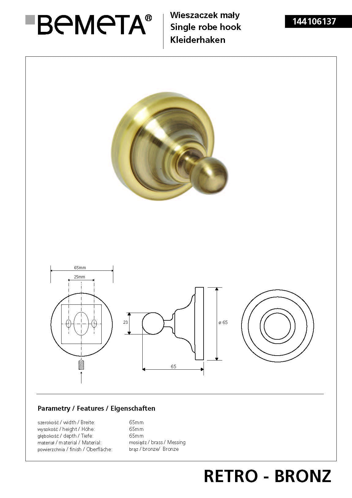Wieszaczek brąz RETRO 144106137 Bemeta