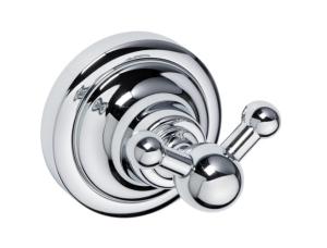 Wieszaczek podwójny wykonany z mosiądzu, pokryty chromem w wykończeniu chrom połysk.