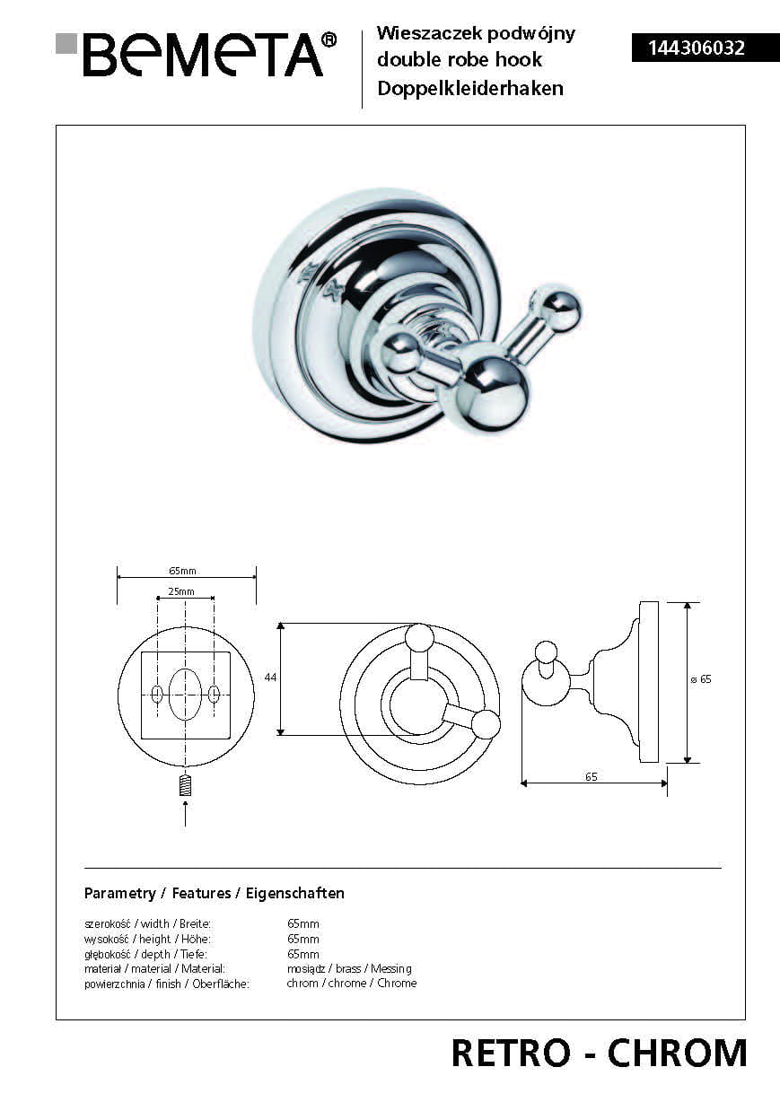 Wieszaczek chrom połysk RETRO 144306032 Bemeta