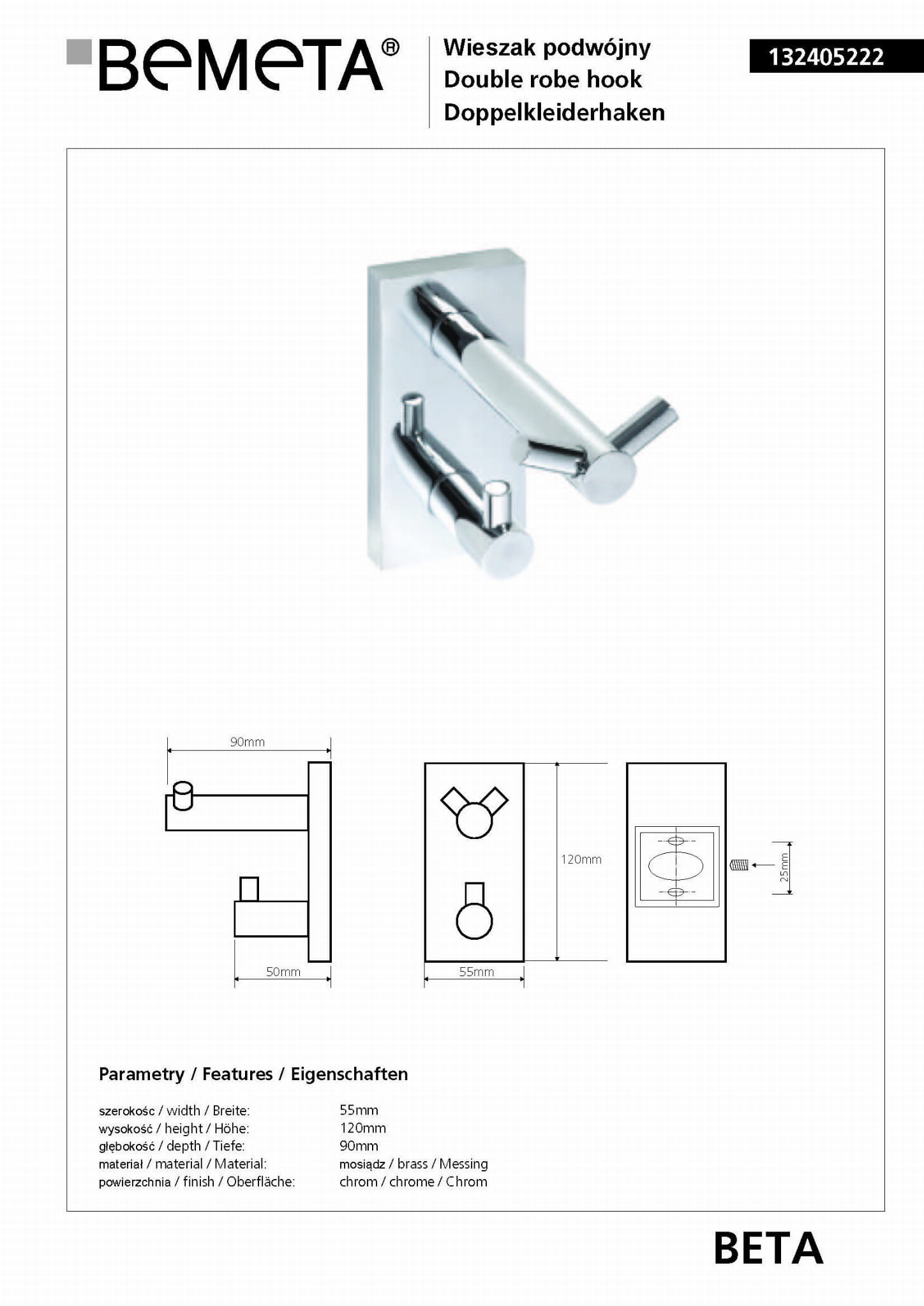 Wieszaczek podwójny BETA 132405222 Bemeta