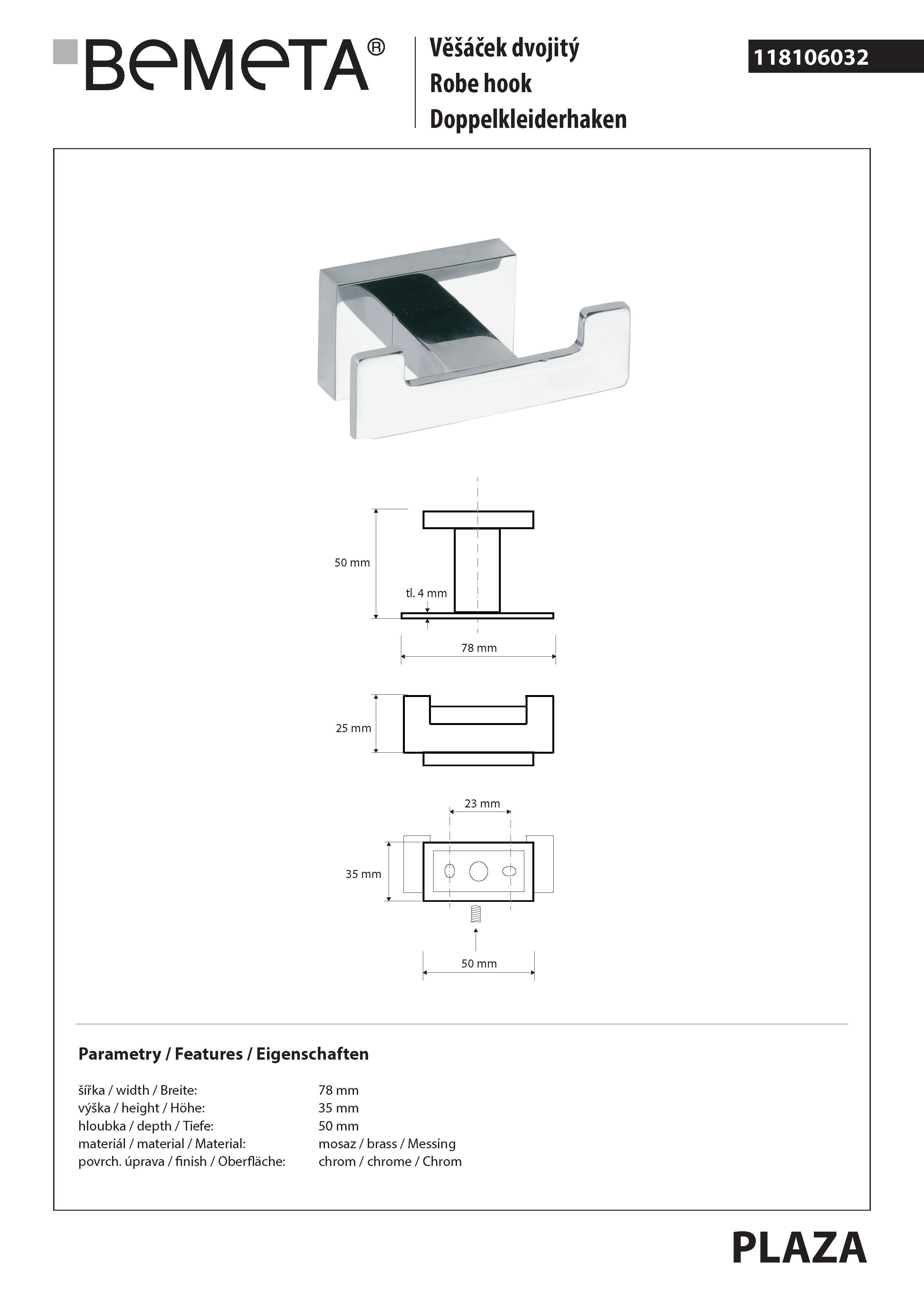 Wieszaczek podwójny PLAZA 118106032 Bemeta wymiary