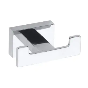 Wieszaczek podwójny wykonany z mosiądzu, pokryty chromem w wykończeniu chrom połysk.