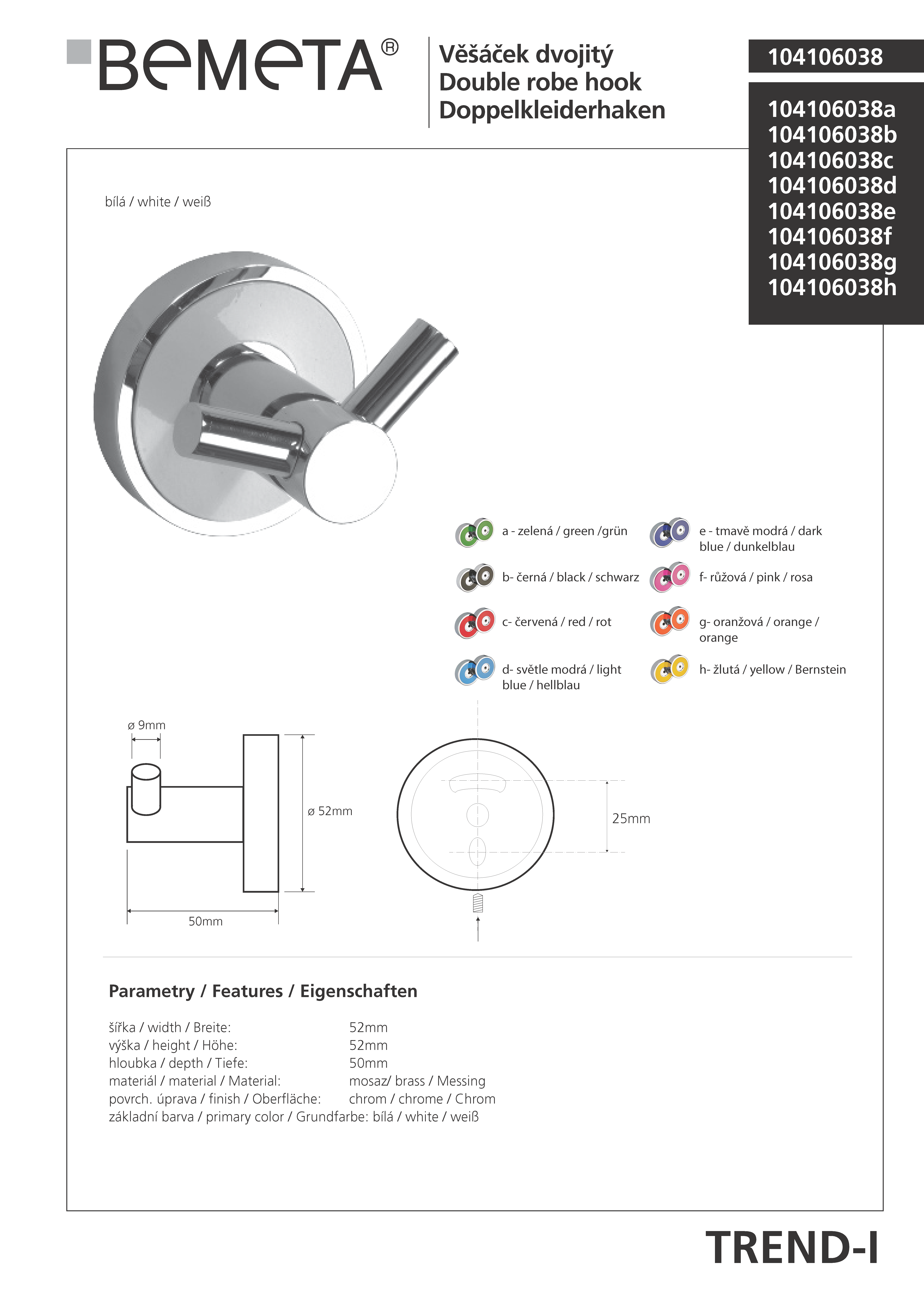 Wieszaczek podwójny TREND-I 104106038 Bemeta wymiary