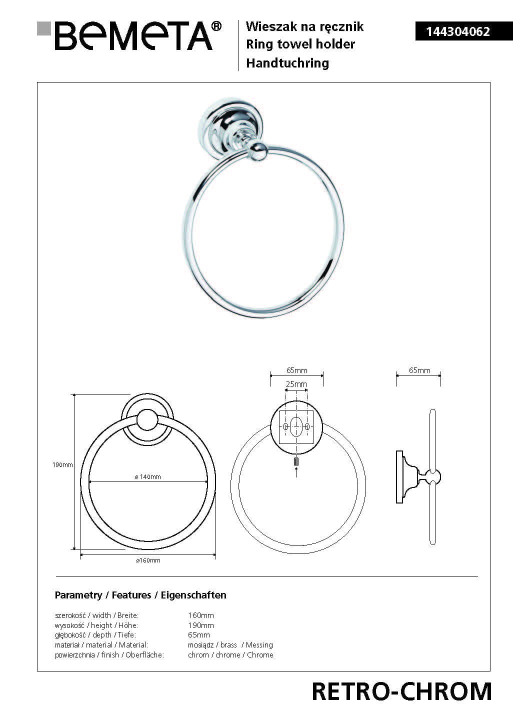 Wieszak kółko chrom połysk RETRO 144304062 Bemeta