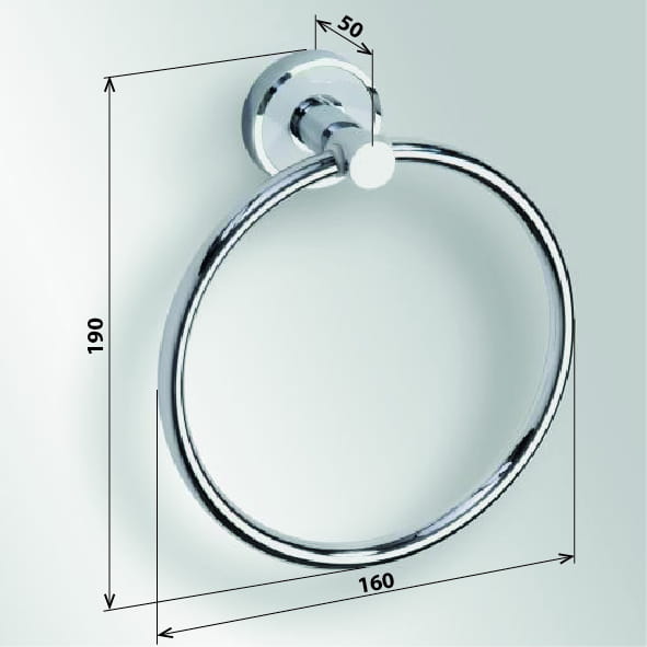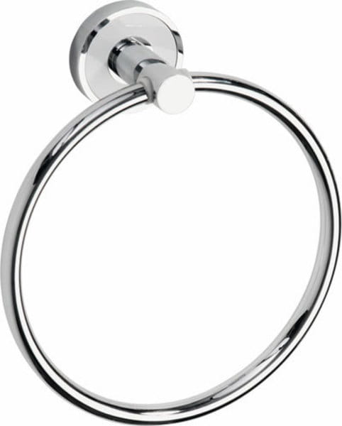 Wieszak w formie koła wykonany z mosiądzu pokrytego warstwą chromu.