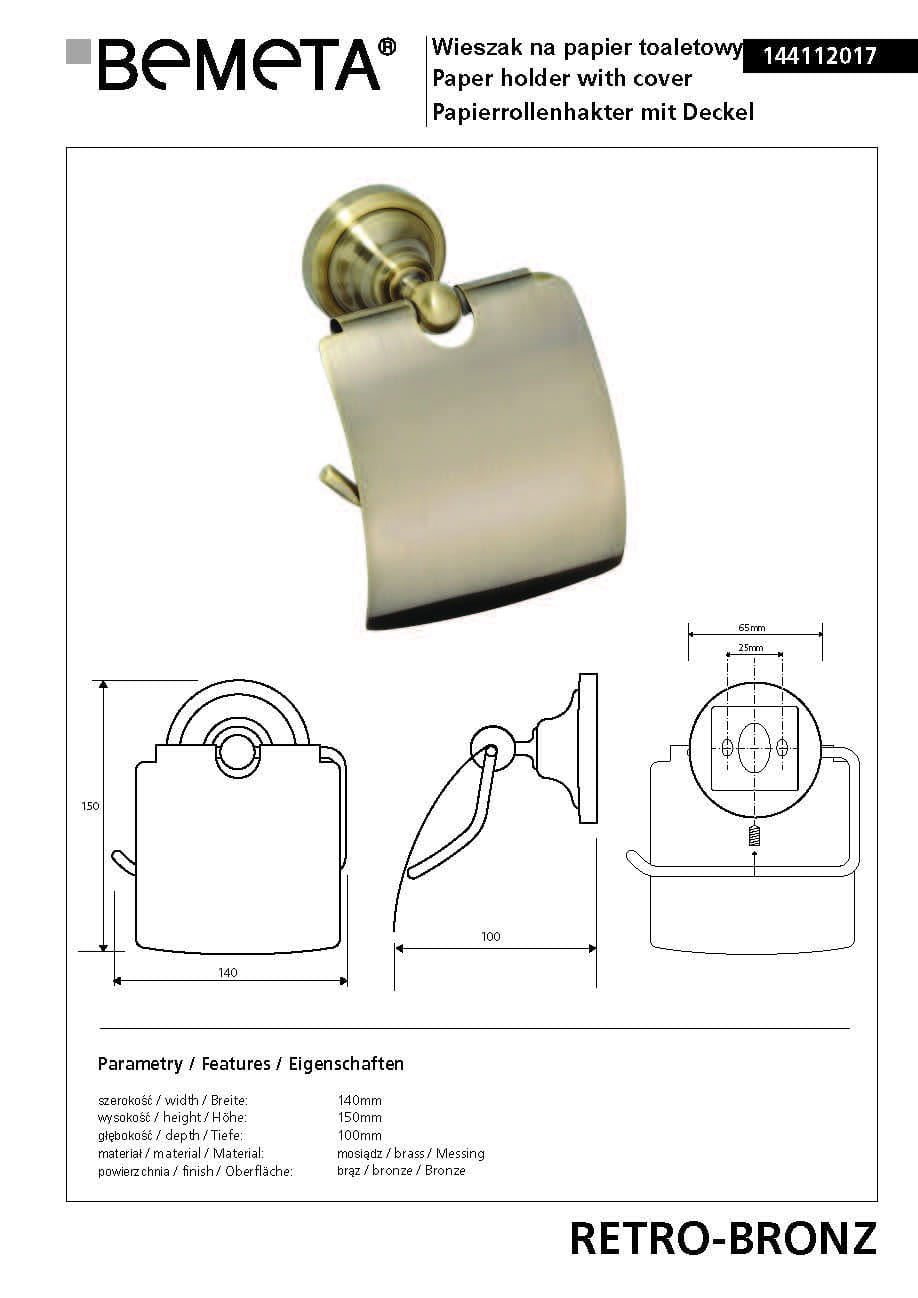 Wieszak na papier toaletowy brąz RETRO 144112017 Bemeta