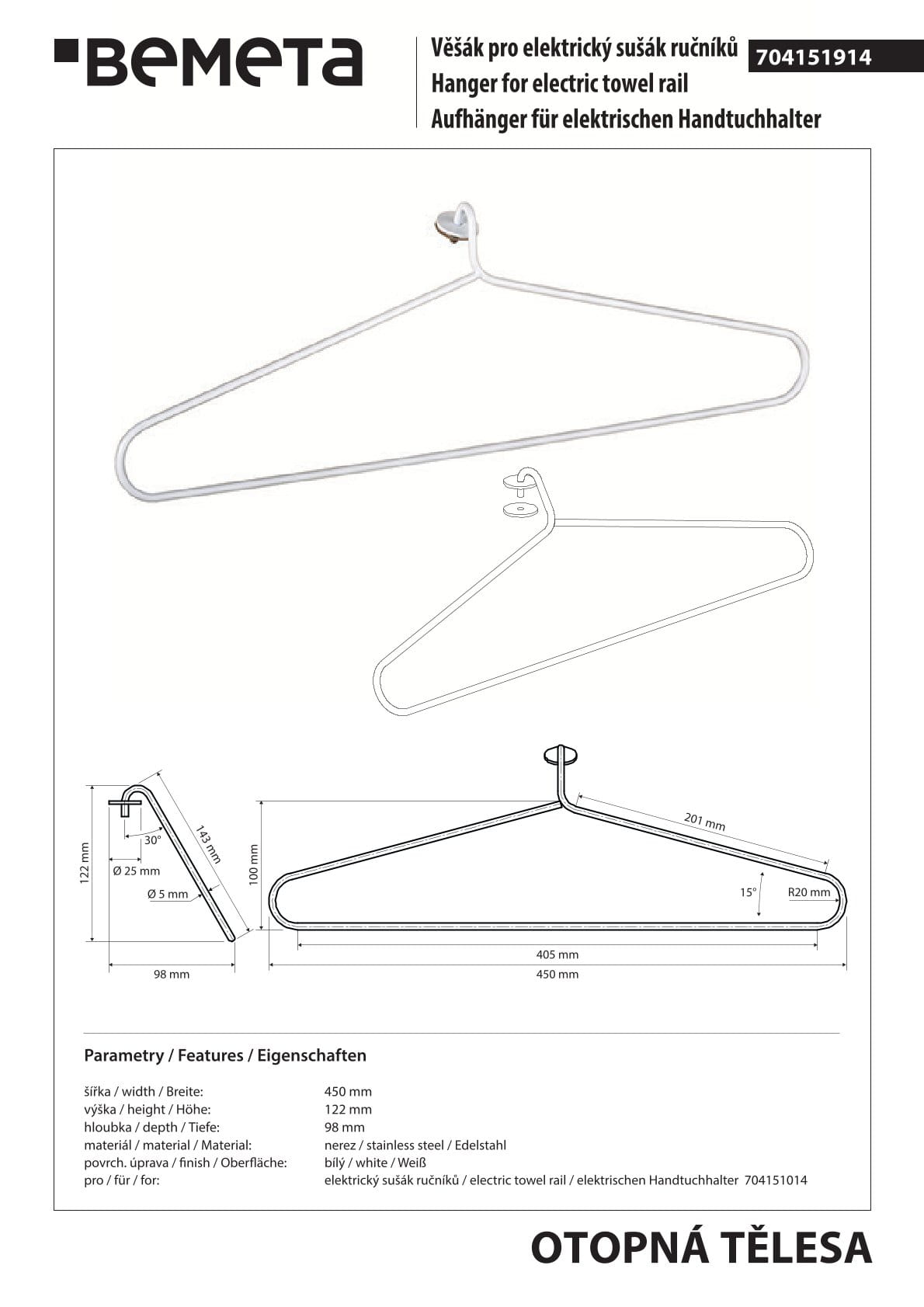 Praktyczny wieszak na ręcznik do grzejnika elektrycznego 704151014 patrz produkty powiązane