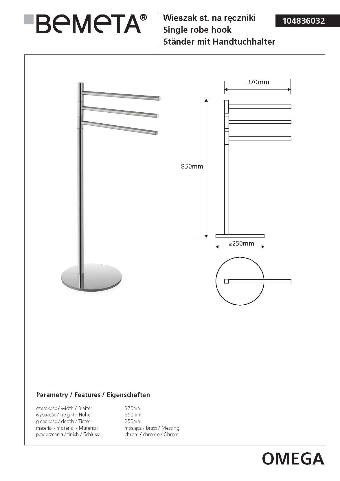 Wieszak na ręczniki stojący OMEGA 104836032 Bemeta