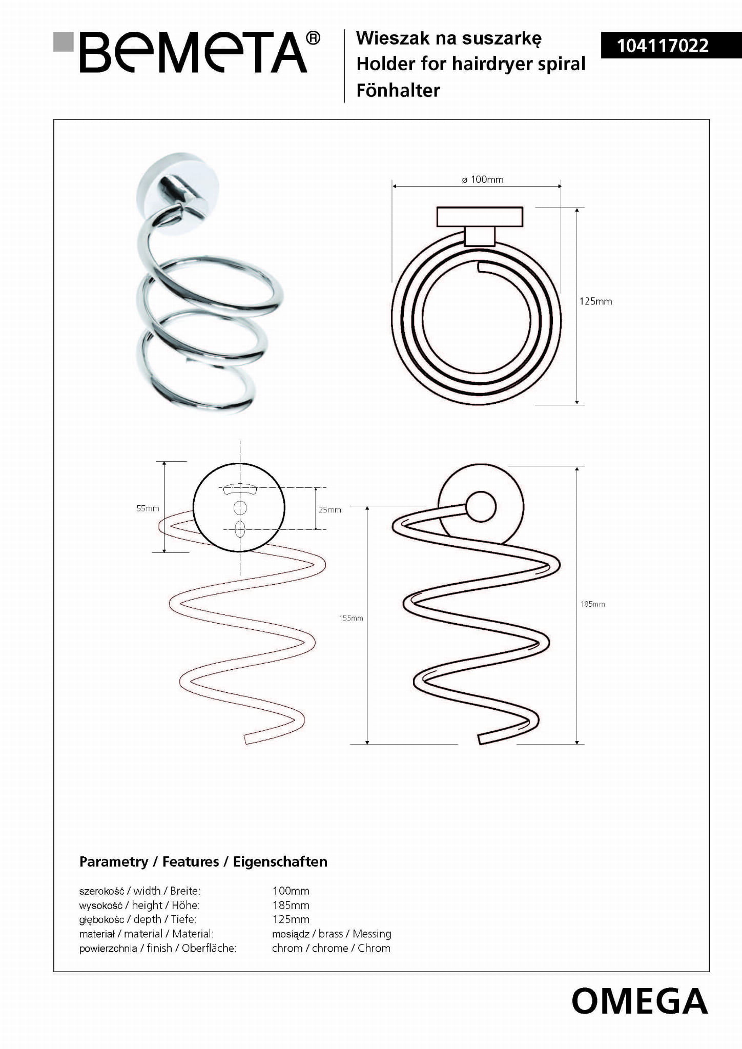 - Kolor/powierzchnia Chrom połysk