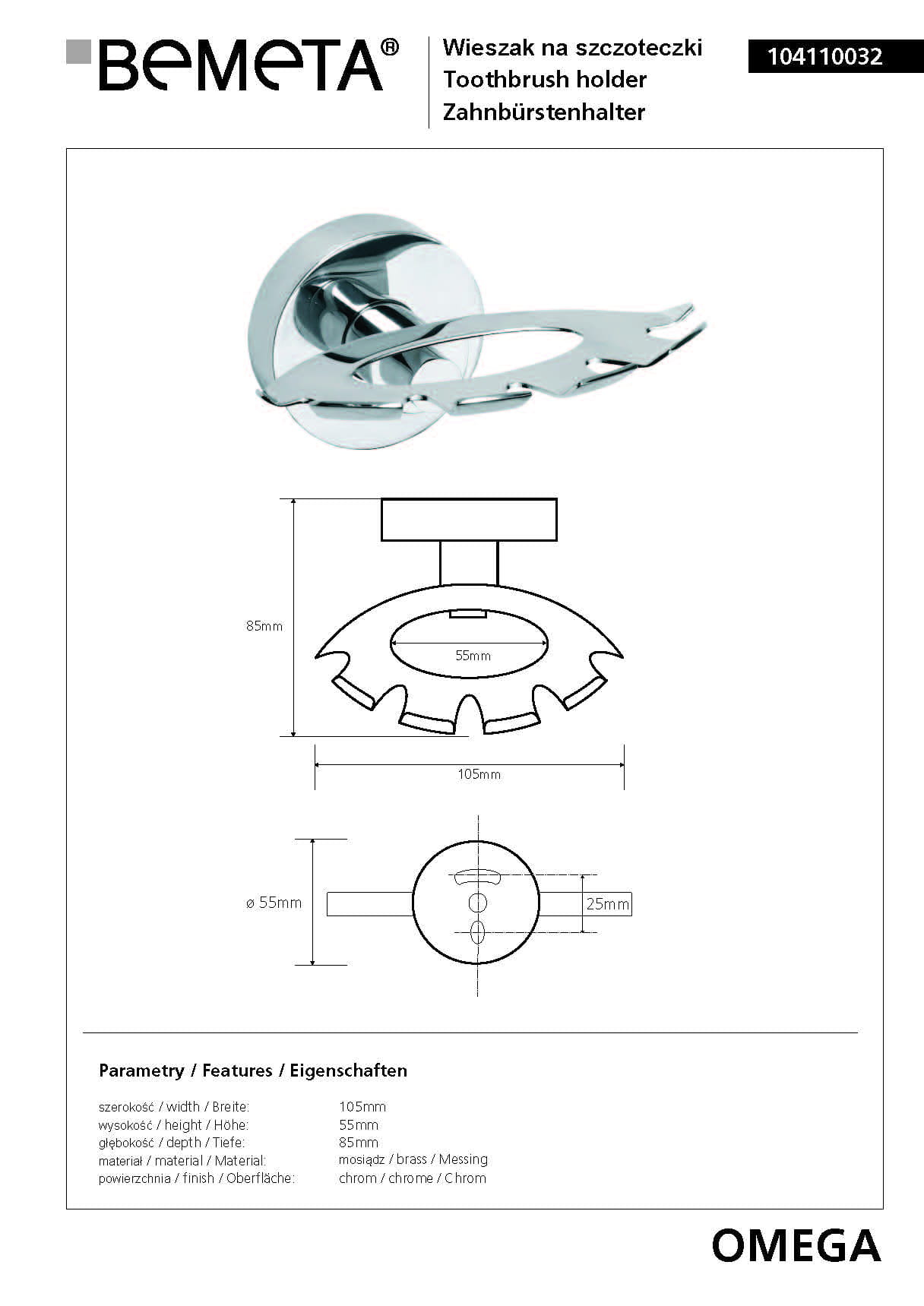 Wieszak na szczoteczki OMEGA 104110032 Bemeta wymiary