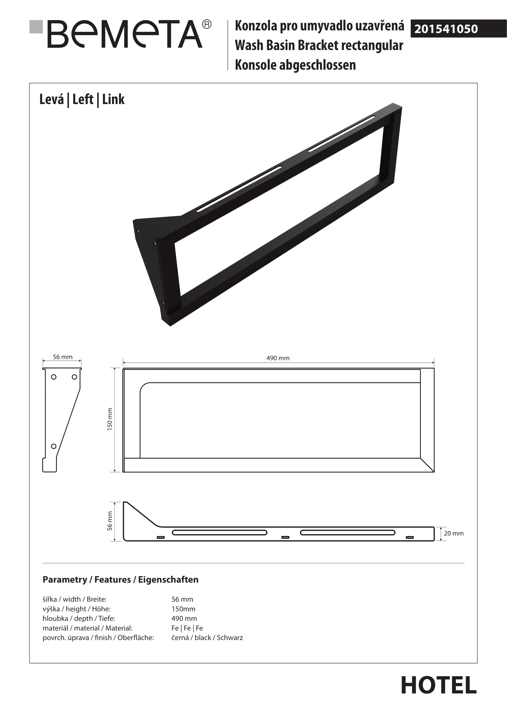 Wspornik do umywalki reling 49 cm lewy czarny 201541050 Bemeta