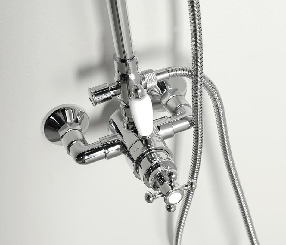 - w komplecie rączka prysznicowa w stylu retro, wąż i uchwyt do rączki