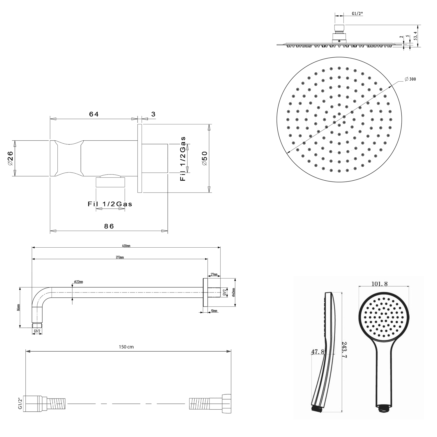 - Funkcje prysznica: Deszcz