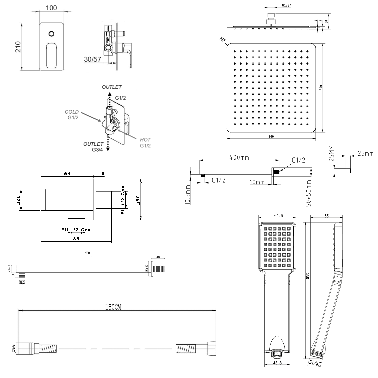 Zestaw prysznicowy podtynkowy SPY z baterią podtynkową 2 wyjścia czarny PY42/15-01 Sapho