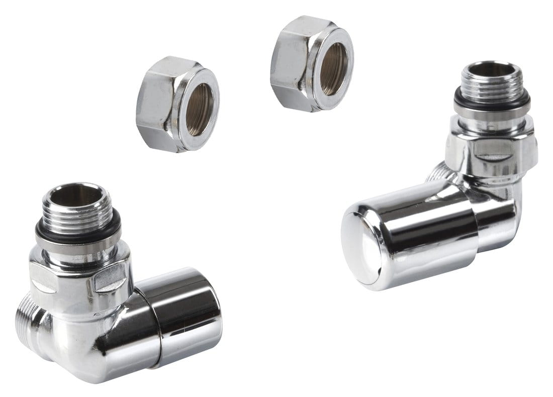 Zestaw przyłączeniowy do grzejników w kolorze chrom. Ogrzewanie centralne. Podłączenie grzejników z gwintem wewnętrznym G 1/2 .W zestawie złączki zaciskowe.