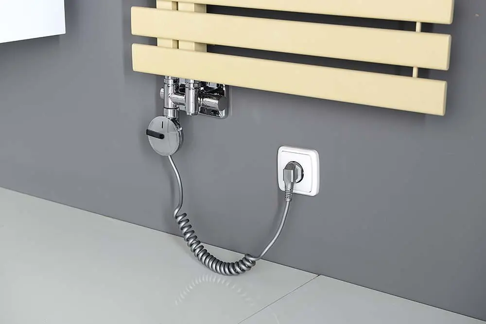 2. Grzałka instaluje się prosto do konstrukcji urządzenia, poza zawór przyłaczeniowy - grzejnik podłącza się zwykłym zespolonym zestawem przyłączeniowym.